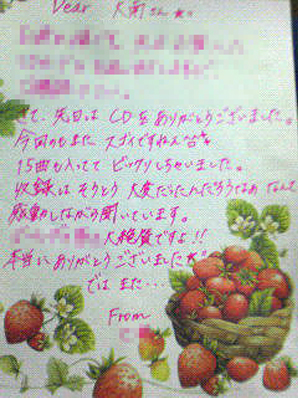 私、自作CDをモバゲーのファンの子達にプレゼントしてて郵送先とかを聞いてました。