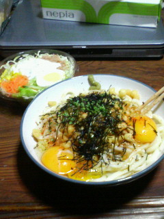 『あげ玉・七味唐辛子・生たまご・きざみノリ・白ごま・かつおぶし・わざび・つゆ』などかけます☆