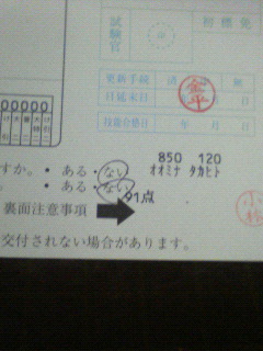 100点満点中、90点合格で91点でした(((^_^;)いやはや・・・なんとも。