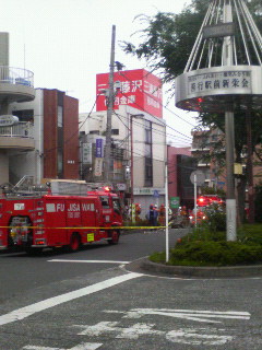 駅前の居酒屋(?)が火事だった模様。何かすごい消防車が来てました。
