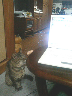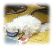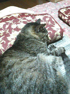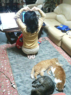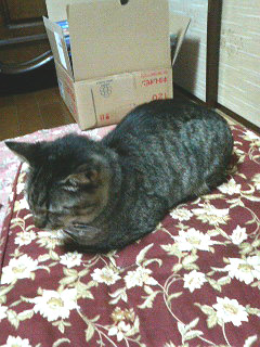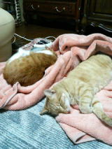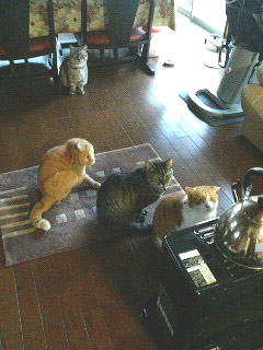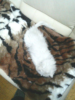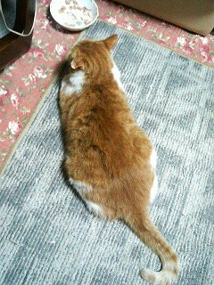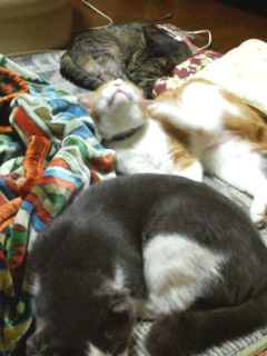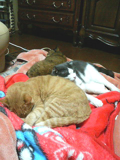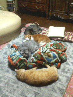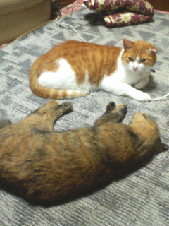 Mさま宅のネコたちがホットカーペットの上でダレてました(^_^;) もう、寒い季節ですもんねー。