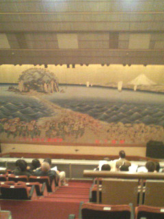 幕がとてもおしゃれでした。昔の江ノ島と富士山のようです☆