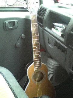 あ、車専用のギターを購入しました☆ボディが小さくて運転席でも弾くことが可能です☆