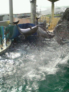 イルカが飛び出てくるちょっと前にシャッターを押すのです 結構難しいんですよ。