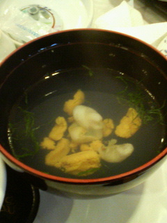 祖母手作りのうにのお吸い物が美味しかったです☆イカの刺身も最高(^o^)!