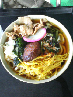 途中、盛岡の先のサービスエリアで遅い晩御飯☆うどんを食べました。