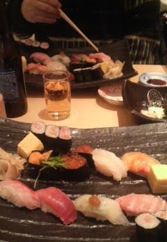 生ビール・梅サワー・お寿司セット・白子ポン酢・イカ刺身などを食しました。