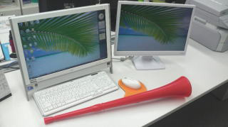 ブブゼラを持って行って、医院のお昼休みに内藤さんと奥さまの前で披露( ・ω・M===く| ブーブブブー♪