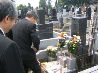 お坊さんがお墓の前でお経を読んで みんなで順番にお焼香をしました