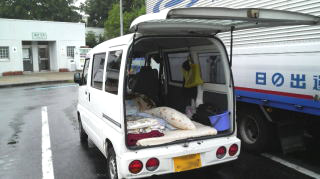 11時起床。ドラキュラはくしょんカーの寝心地最高!だが昼間になると日差しが強くなり車内が暑くなる