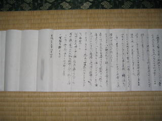 祖父にお世話になったいう人から和紙で書いた巻物のような手紙が届きました。
