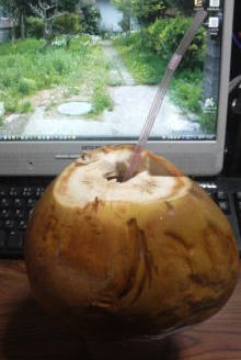 フィリピン産とのこと。これ飲んでも大丈夫なんでしょうかね(‥`;)?包丁で中身をくり抜いてみる。。。