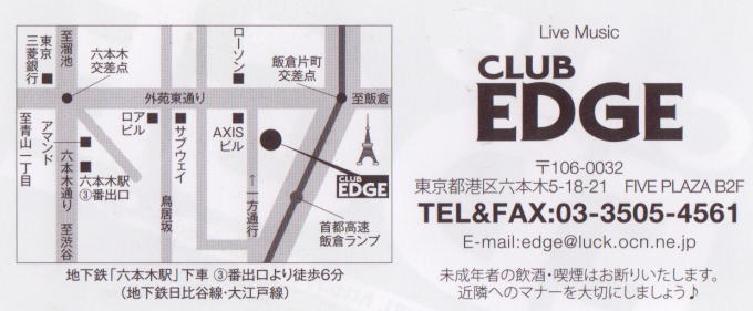 来月、2011年4月3日(日)18:30より六本木CLUB EDGEにて私がやってるバンドのライブがございます☆