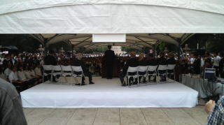 日本武道館の菅総理の話がちょっと長かったとのことでこちらでは12時ちょうどに黙祷
