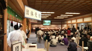 さてさて参拝。今年は奮発して本殿にて参拝します(`´)!政治家と同じ場所で参拝です!