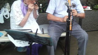 毎年いらっしゃるハーモニカ&尺八吹いてるご老人。軍歌を演奏してます。
