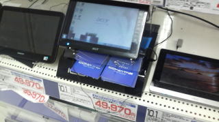 最近のイーモバイルなどの通信機は早いですからね。そこらへんも含めパソコンショップに市場調査に。