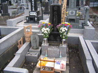 みんなでバスに乗ってお墓に移動。祖父も眠ってます。雨が少し降ってましたがすぐ晴れました。