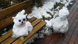 朝起きると大雪でした(゜Д゜)!!駅前にプチ雪だるま(´・ω・`)♪